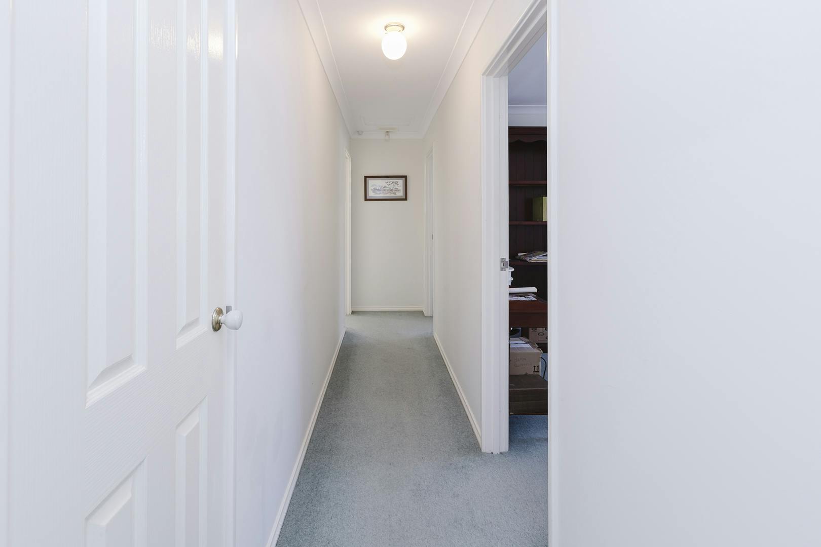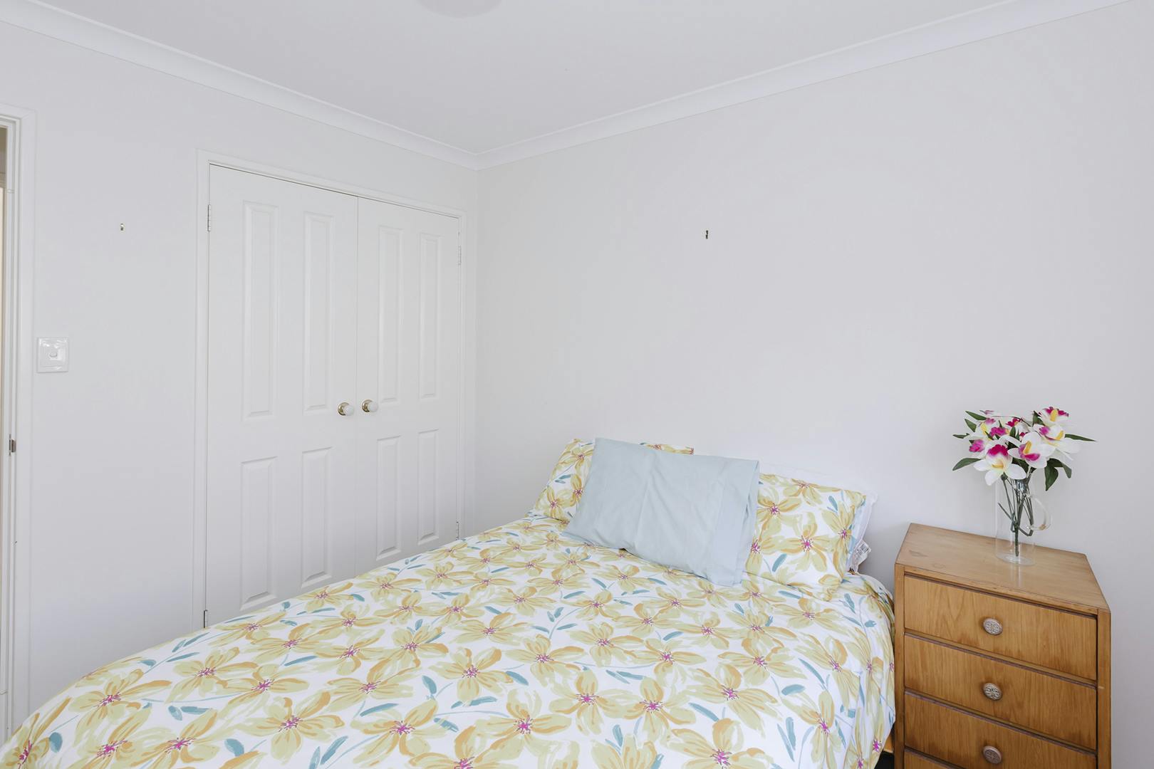 On the other side of the entrance hall are the three bedrooms. The master is a queen-sized room with three built-in robes, each with shelving and hanging space.